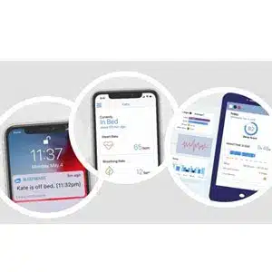 This next-generation bed sensor measures BCG waves (ballistic forces generated by the heart) to provide real-time information and status on heart rate, breathing rate, quality of sleep, in-and-out of bed, pressure sore, and identify health risks during sleep.